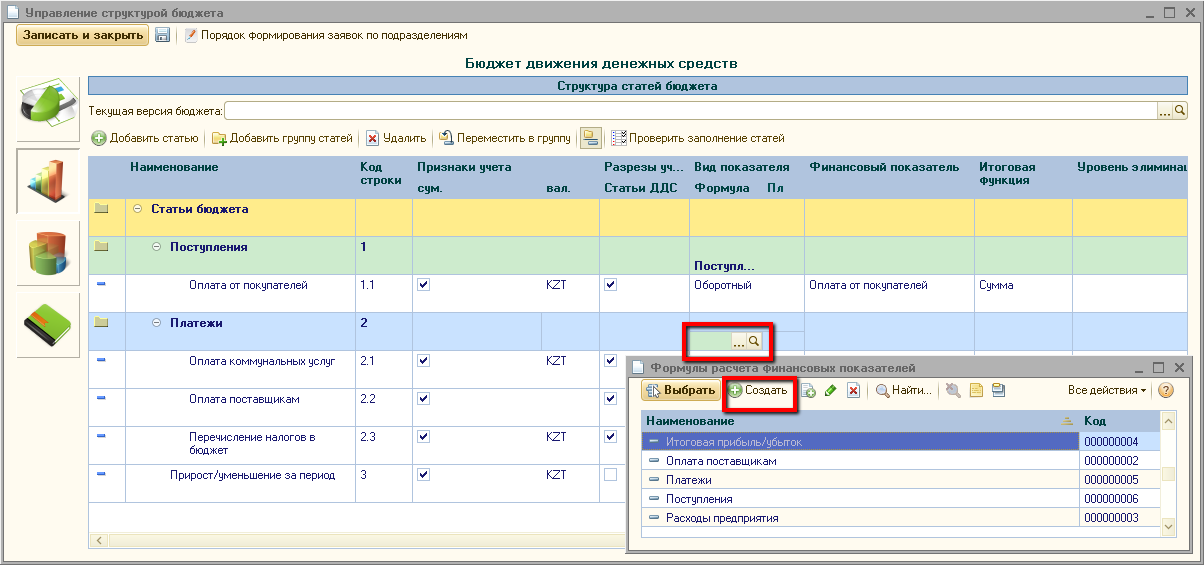 Созданную формулу необходимо указать в бюджете для группы статей.