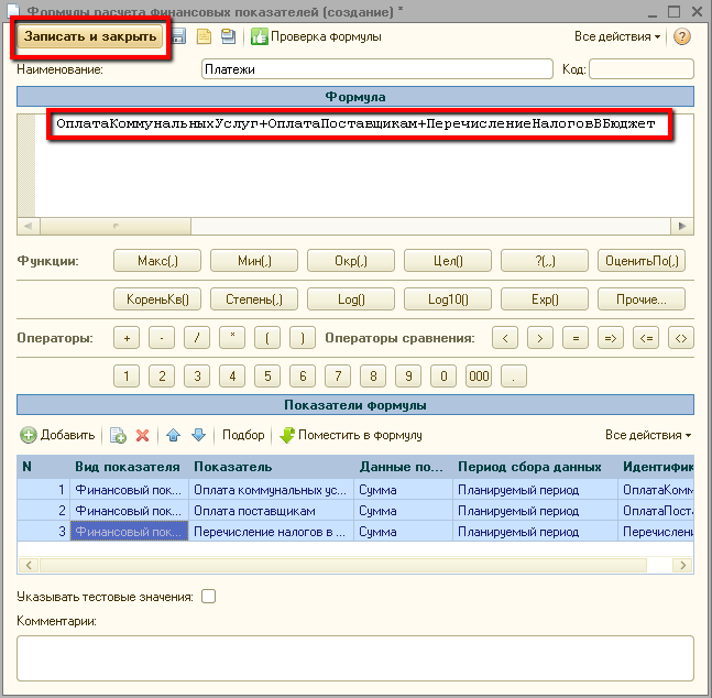 После того, как выбранные показатели были помещены в поле «Формула», формулу необходимо сохранить.