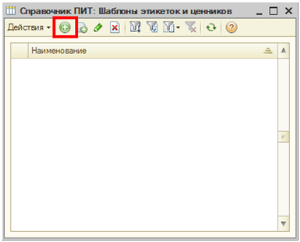 Откроется справочник «ПИТ: Шаблоны этикеток и ценников». В первую очередь, необходимо создать шаблон этикетки для тех товаров, для которых штрих-код не указан. Для добавления нового шаблона необходимо воспользоваться кнопкой «Добавить», расположенной на командной панели списка справочника.