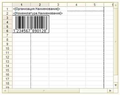 После этого область выделится пунктирными линиями. Данные линии и будут границей печати ценника.