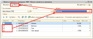 После этого будет открыта специальная обработка «Печать этикеток и ценников».