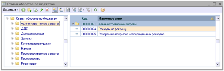 Для определения статей бюджета в информационной базе конфигурации представим их в следующих таблицах: