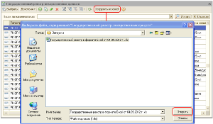 Государственный реестр лекарственных средств из файла Excel загружается в одноименный регистр сведений, из которого впоследствии производится подбор номенклатуры. Чтобы загрузить государственный реестр лекарственных средств, необходимо через меню «Операции» - «Регистры сведений» открыть форму регистра сведений «Государственный реестр лекарственных средств» и нажать кнопку «Загрузить из excel» командной панели регистра. В открывшемся диалоговом окне необходимо выбрать нужный файл Excel и нажать кнопку «Открыть». После этого начнется загрузка реестра в регистр сведений. При повторной загрузке файла сроки регистра сведений будут перезаписаны.