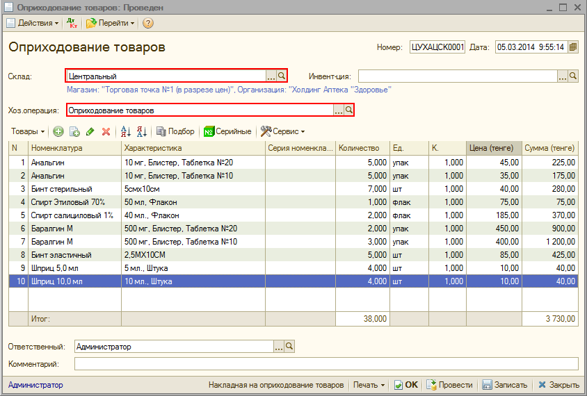 Таким образом, мы рассмотрели как ввести начальные остатки и определить ценовую политику в прикладном решении «1С:Аптека для Казахстана». В следующей статье речь пойдет об управлении маркетинговыми акциями в прикладном решении «1С:Аптека для Казахстана».