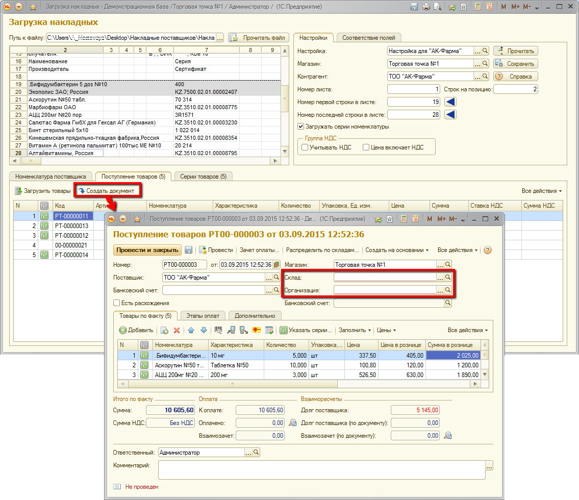 Многие поставщики медикаментов предоставляют свои накладные или счета-фактуры в электронном виде. Использование специального механизма, который позволит обработать и загрузить такие накладные, во многом облегчит труд сотрудникам аптек.
