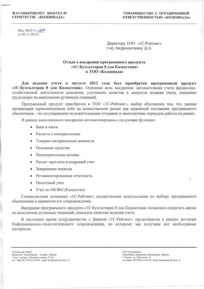 | Внедренное типовое решение: | 1С:Бухгалтерия 8 для Казахстана |