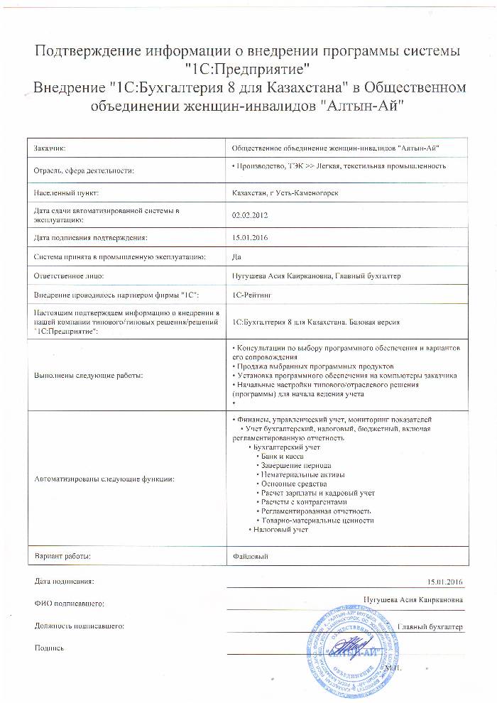 Общественное объединение женщин-инвалидов «Алтын-Ай»