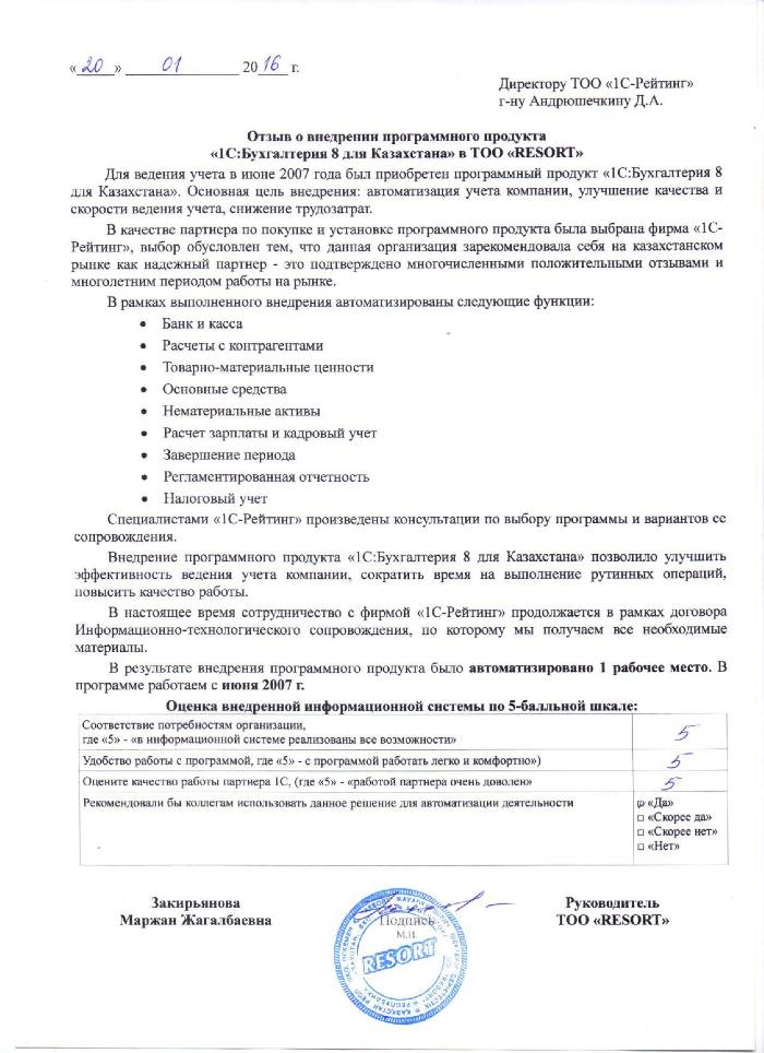| Внедренное типовое решение: | 1С:Бухгалтерия 8 для Казахстана |