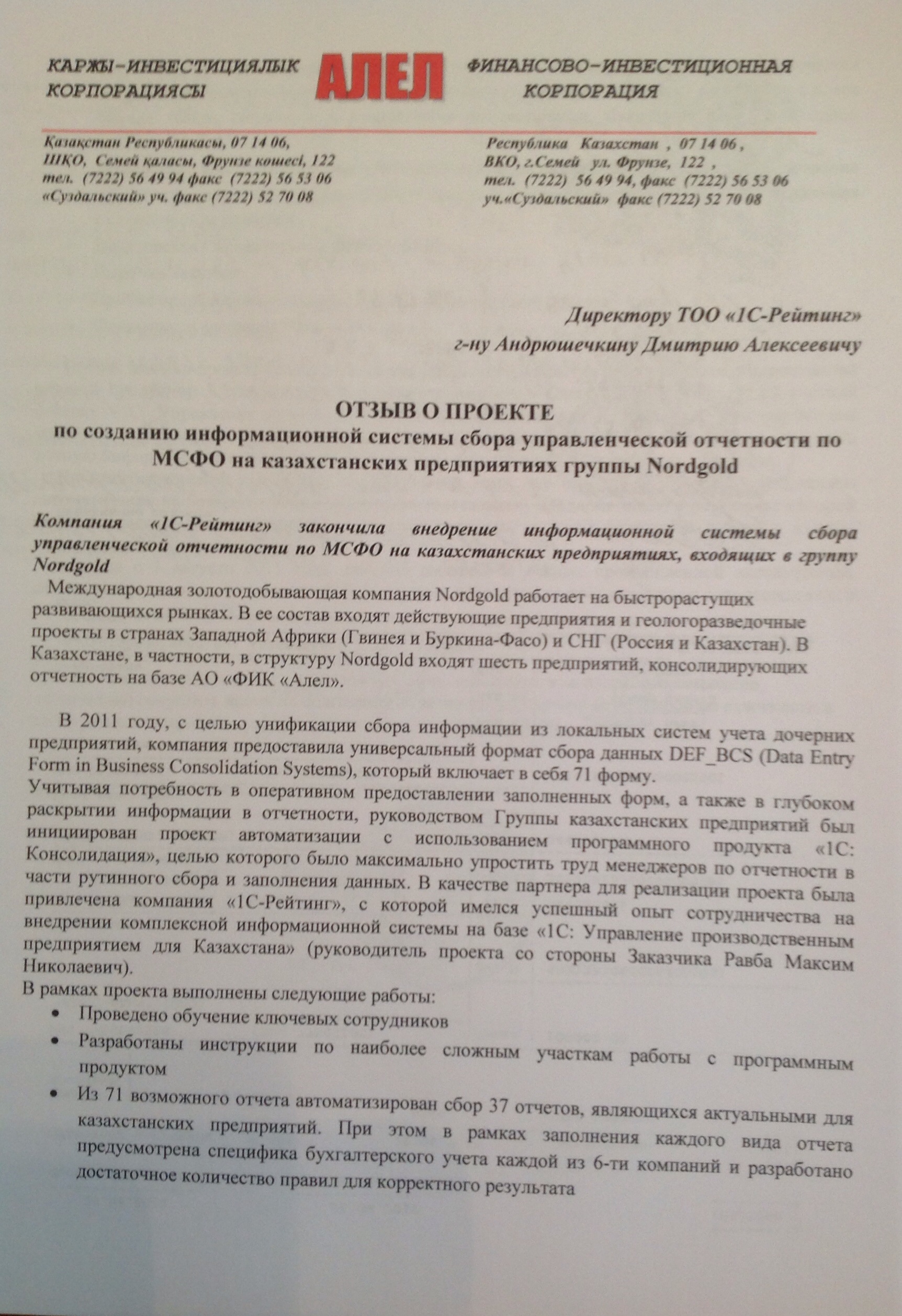 Компания «1С-Рейтинг» закончила внедрение информационной системы сбора управленческой отчетности по МСФО на казахстанских предприятиях, входящих в состав компании Nordgold.